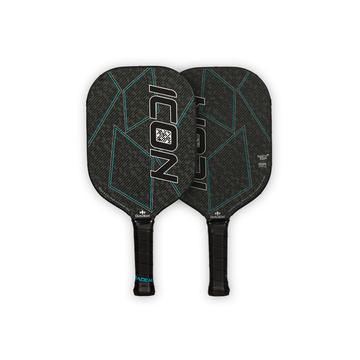 Utilizing high grade Japanese sourced carbon fiber the face is the perfect blend of stiffness and comfort for a soft but powerful feel. In the core our 8mm PP honeycomb allows you to play comfortably from the baseline with easy power. Spin RP, our proprietary two component polyurethane coating allows the Icon to be the most spin friendly USAPA approved paddle on the market. Perfectly balanced and beautifully designed with a sleek edge guard and high end graphics. The Icon is the next generation of pickleball paddles.